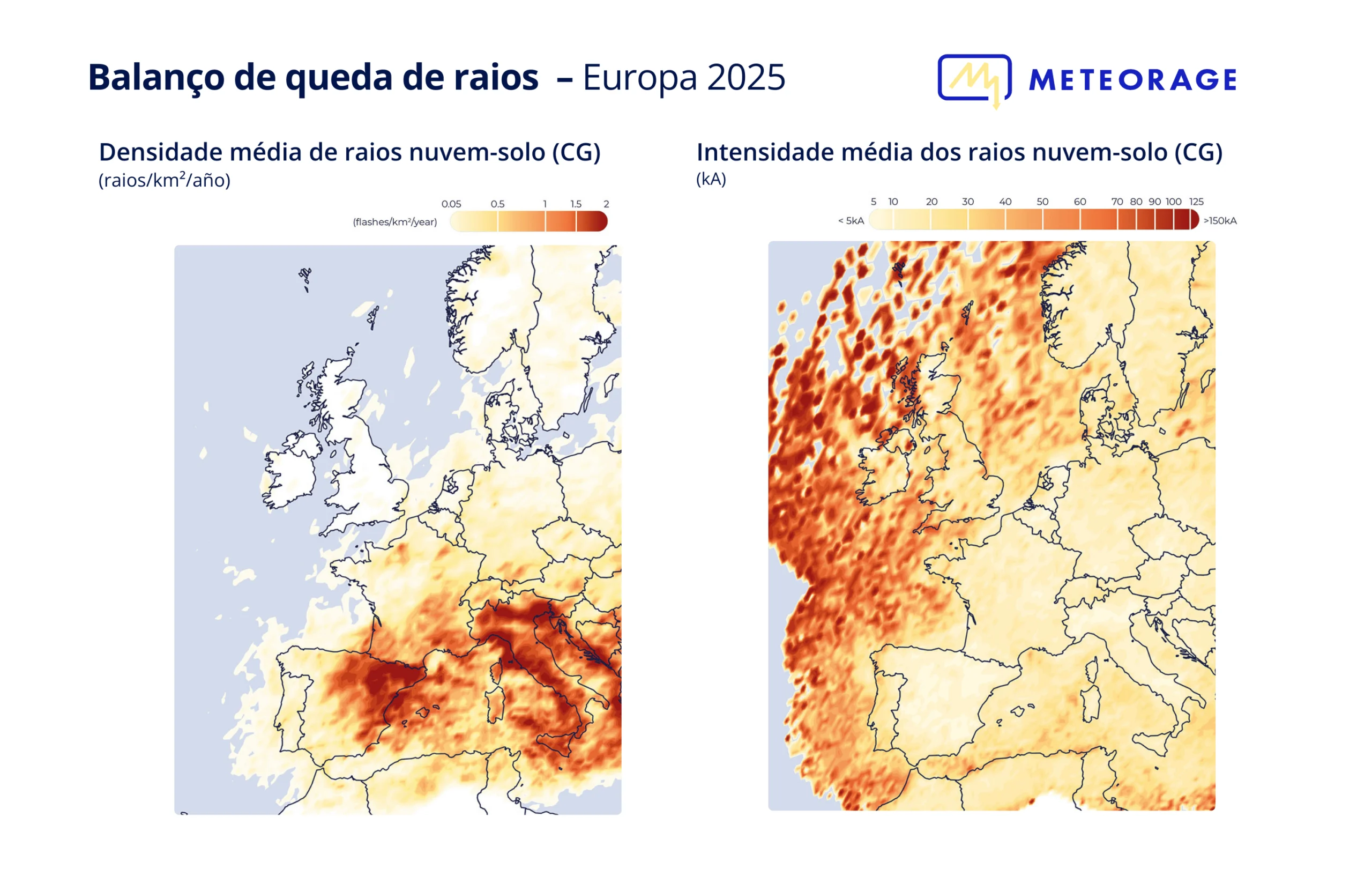 A Rede de deteção de raios da Meteorage registou em 2025