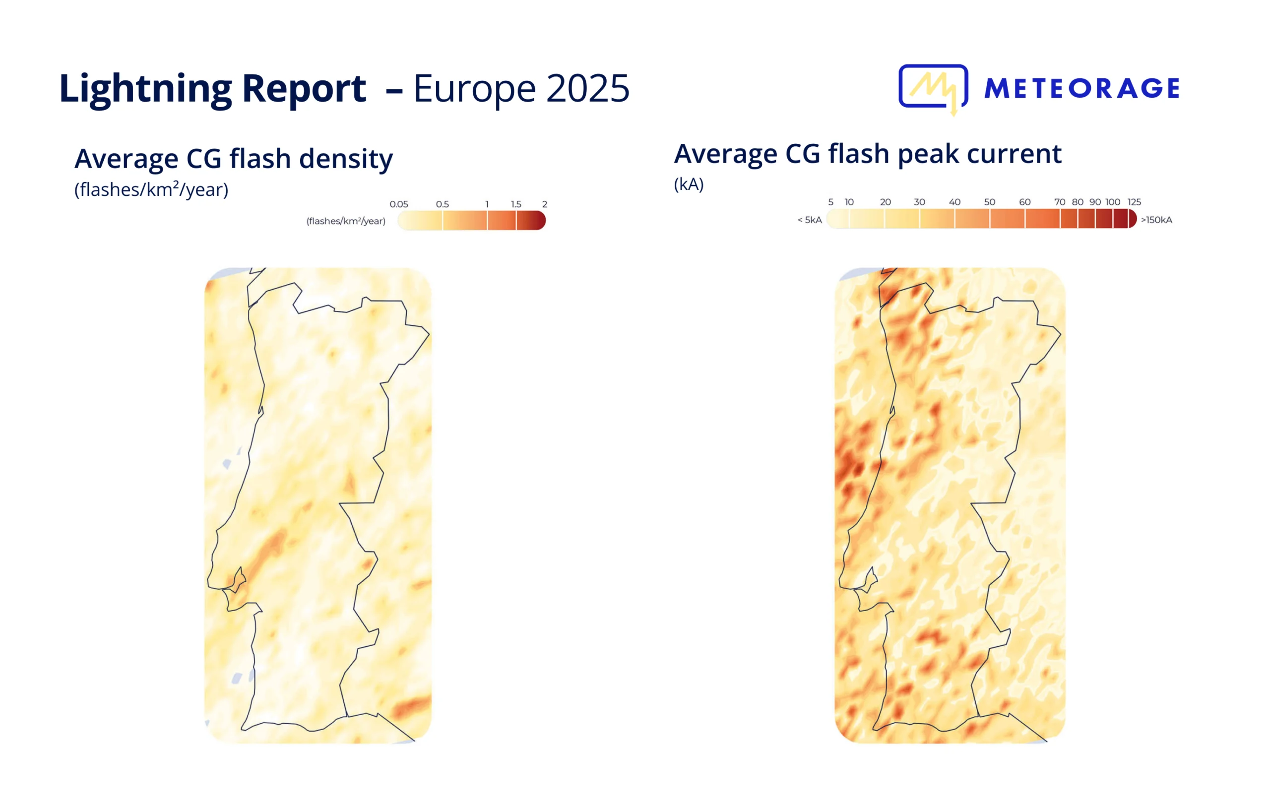 Although the thunderstorms developed mainly along the classic Spain – France – Germany axis, Italy also saw significant activity, becoming the country most struck by lightning in Europe during this season.